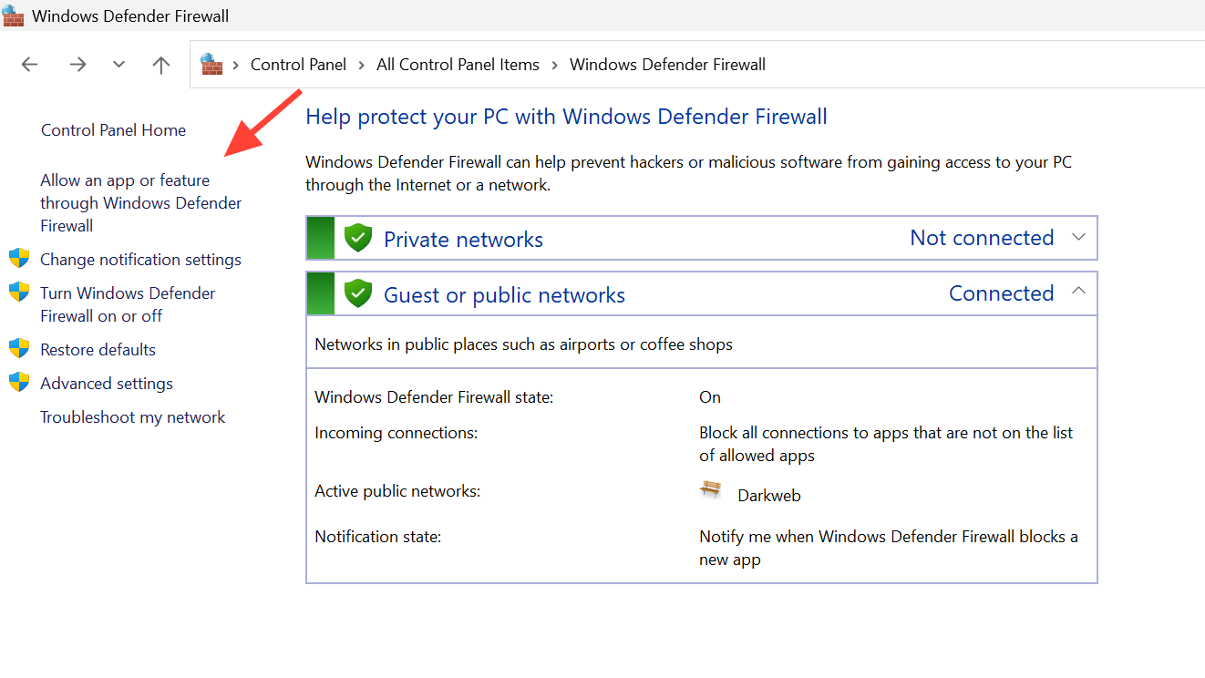 - EA app or Steam is allowed on both Private and Public networks.