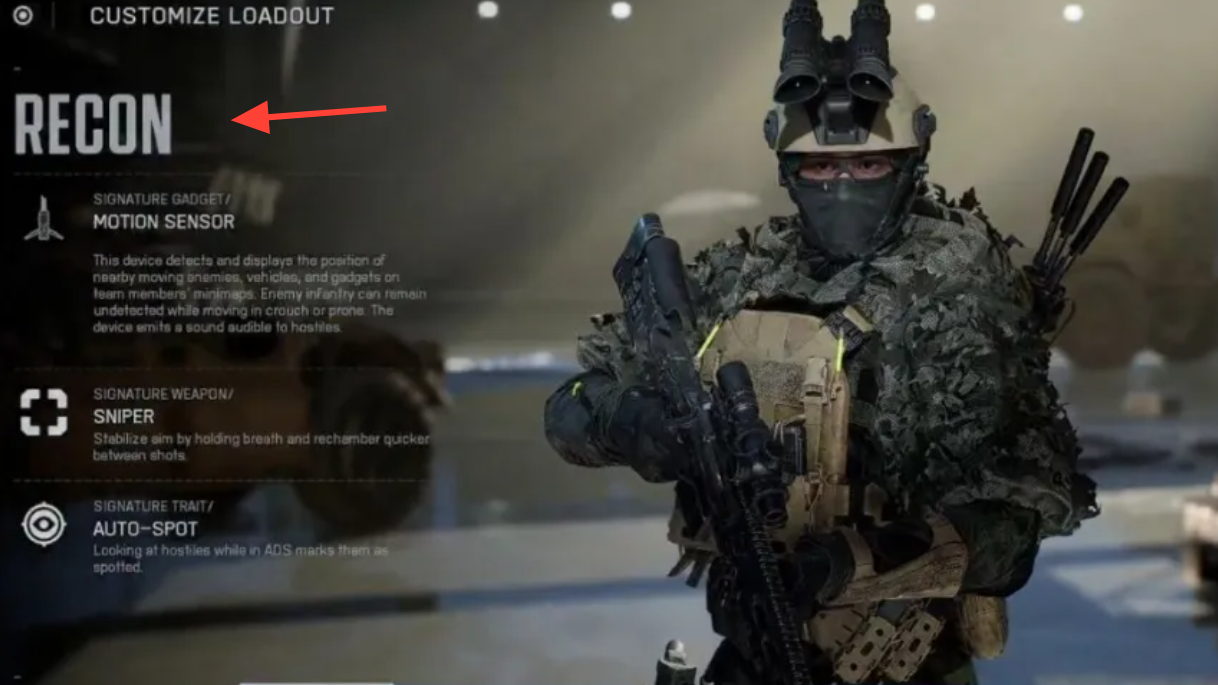 Step 1: Select the Recon class and ensure the Sniper training path is active. This path is the default for Recon and enables access to UAV Overwatch.