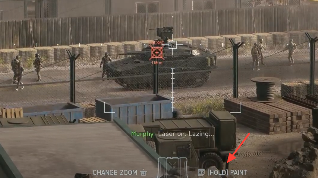 The Paint function is the reason to bring this gadget. Hold the Paint input on an enemy vehicle—tanks, helicopters, jets—until it’s marked. That mark is visible to teammates and is what enables quick, reliable locks for air-defense and other long‑range launchers. In practice, painting does two things: