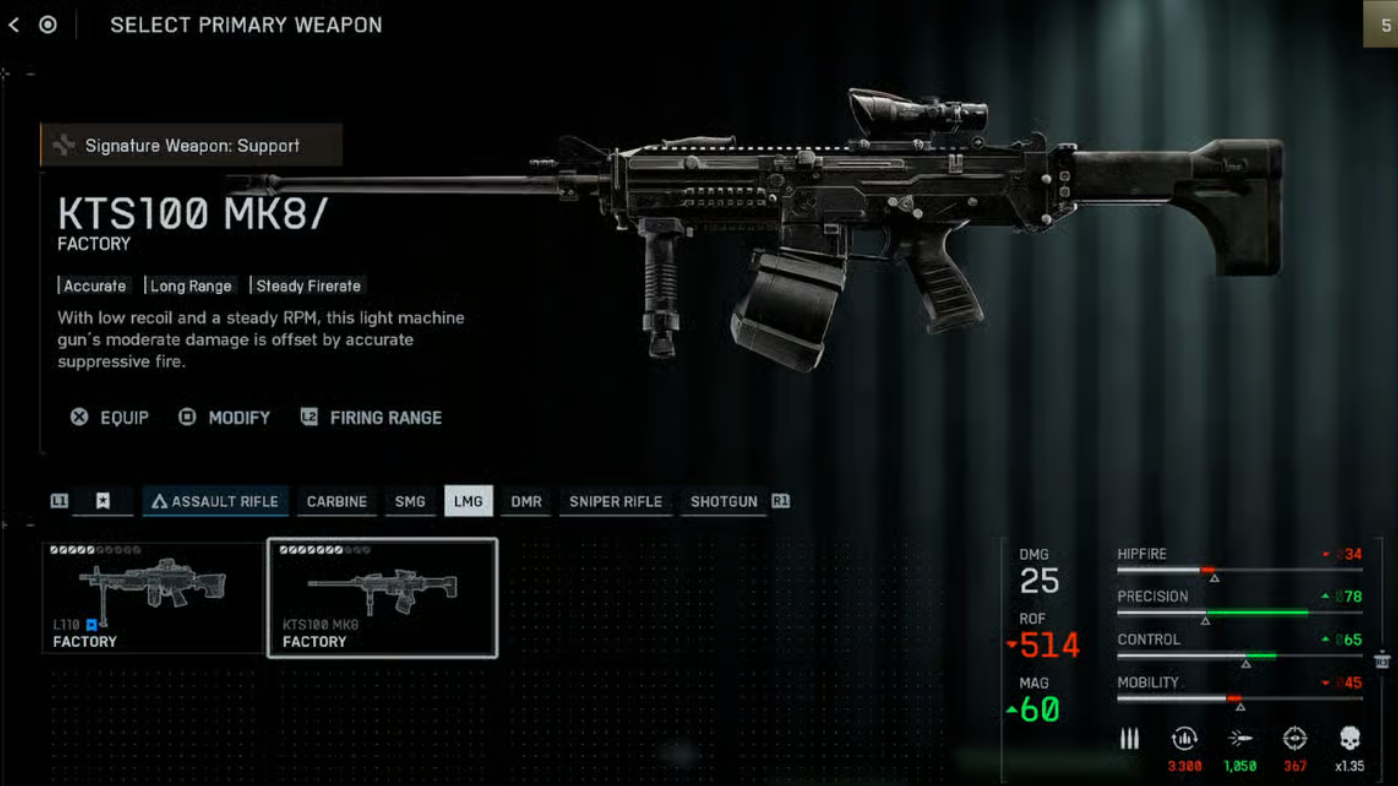 - Suppress 300 enemies with LMGs (one count per unique enemy you suppress).