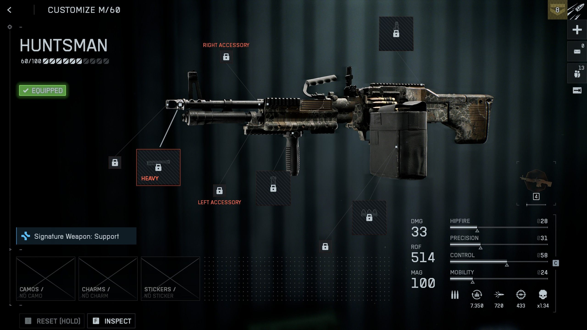 - If you see a packaged variant in your armory, you may still need to unlock the base M/60 to customize attachments. Equip the standard version and level it to open up the full attachment grid.