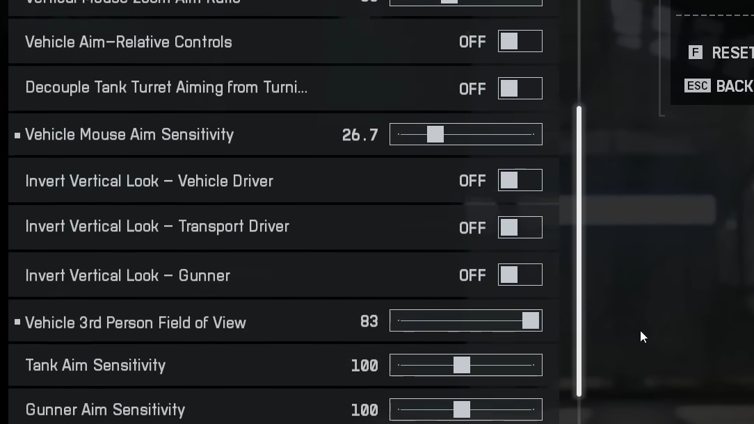 | Vehicle Mouse Aim Sensitivity | 40 |