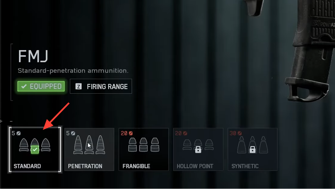| Ammunition | Standard FMJ | Solid baseline; save points for the suppressor and mag. |