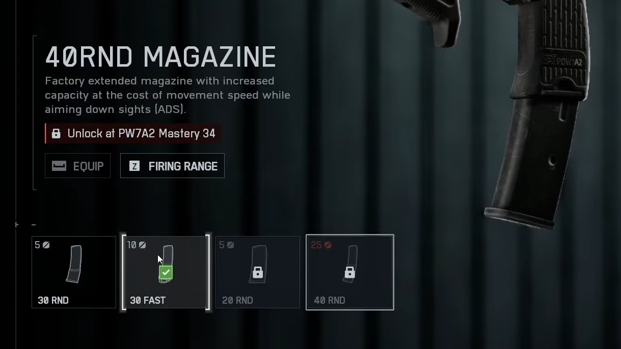 | Magazine | 30RND Fast Mag | 10 | Faster reload cadence to sustain pressure. |