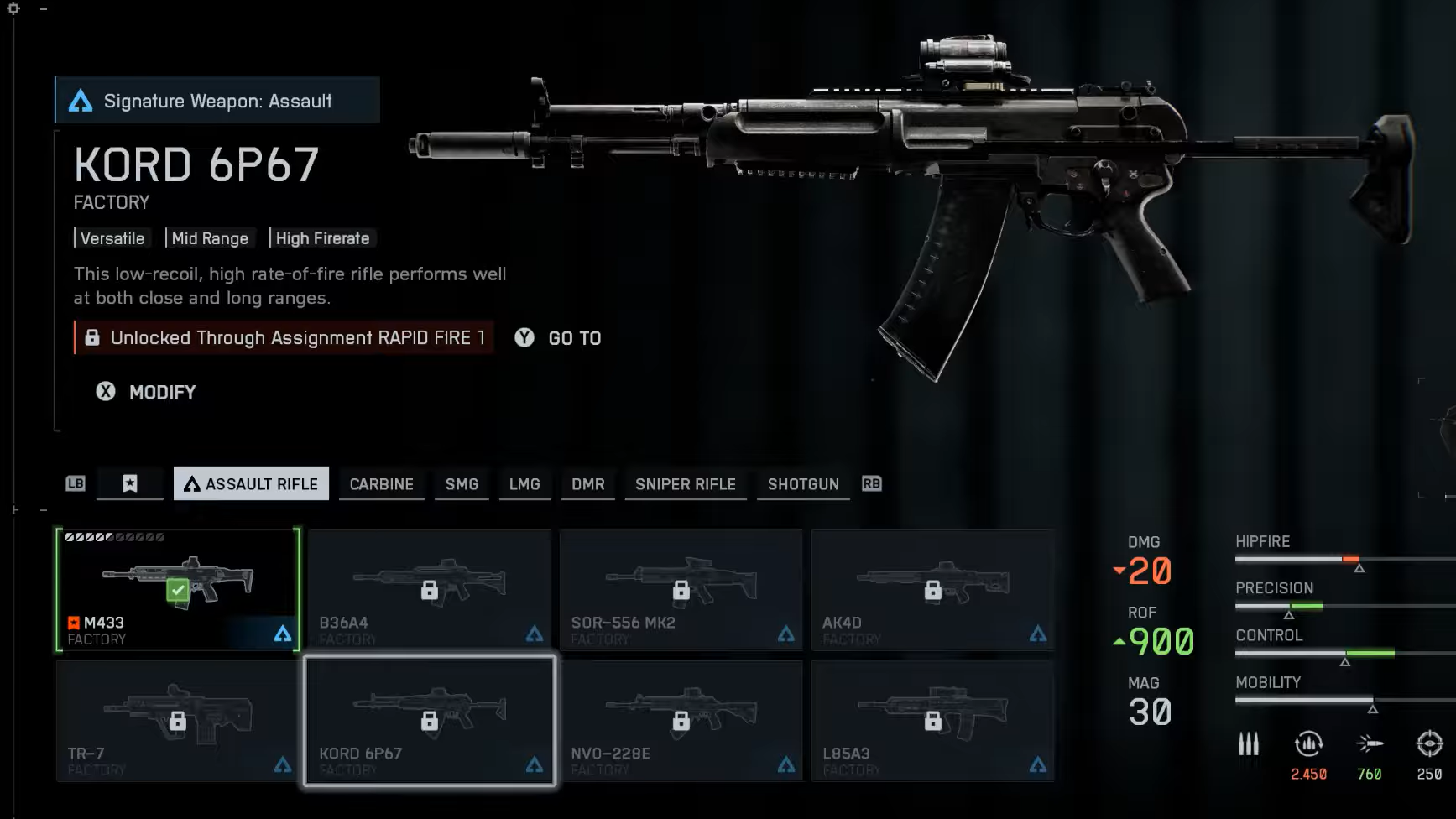 - 300 kills with KORD 6P67 or B36A4 — knock this out in your usual infantry modes.