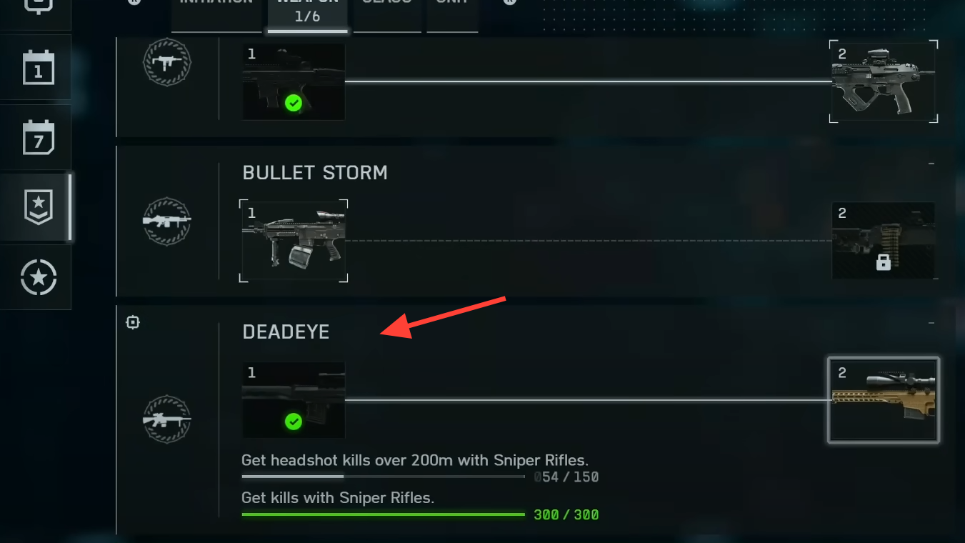 - Long-range thresholds (kills or headshots beyond a stated distance only count when the range requirement is met).