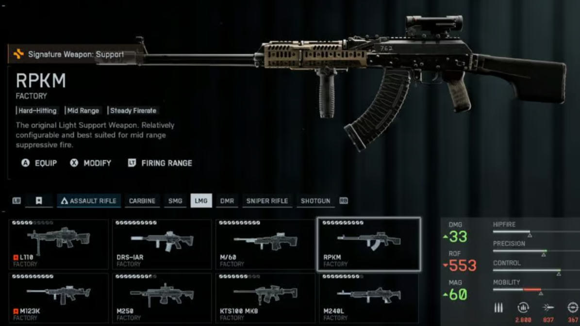 This build stays shoulder-to-shoulder with the assault line. Keep ammo and health flowing, smoke off sightlines, and chain revives as your team trades. Rifles, carbines, and SMGs let you adapt as fights swing from rooms to alleys; RPKM and DRS-IAR give you “AR-like” control with LMG magazines if you prefer the class’s signature weapons.