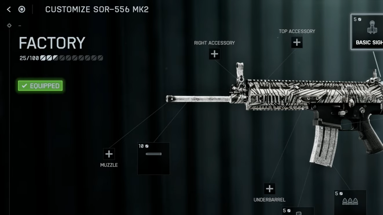 | SOR-556 MK2 | Mid–long range anchor | Muzzle: Standard Suppressor • Barrel: 14.5" Factory • Underbarrel: Ribbed Stubby • Magazine: 30 RND • Scope: 3VZR 1.75x • Right Accessory: 50 MW Blue |