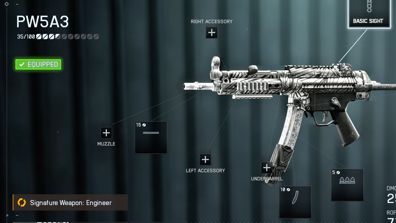PW5A3 — CQB/Standard Suppressor, 245mm Custom barrel, a stubby or canted underbarrel for steadiness, 30–40‑round magazines, and iron sights or a minimal red‑dot. Its near‑zero recoil lets you farm downs beyond typical SMG distances.