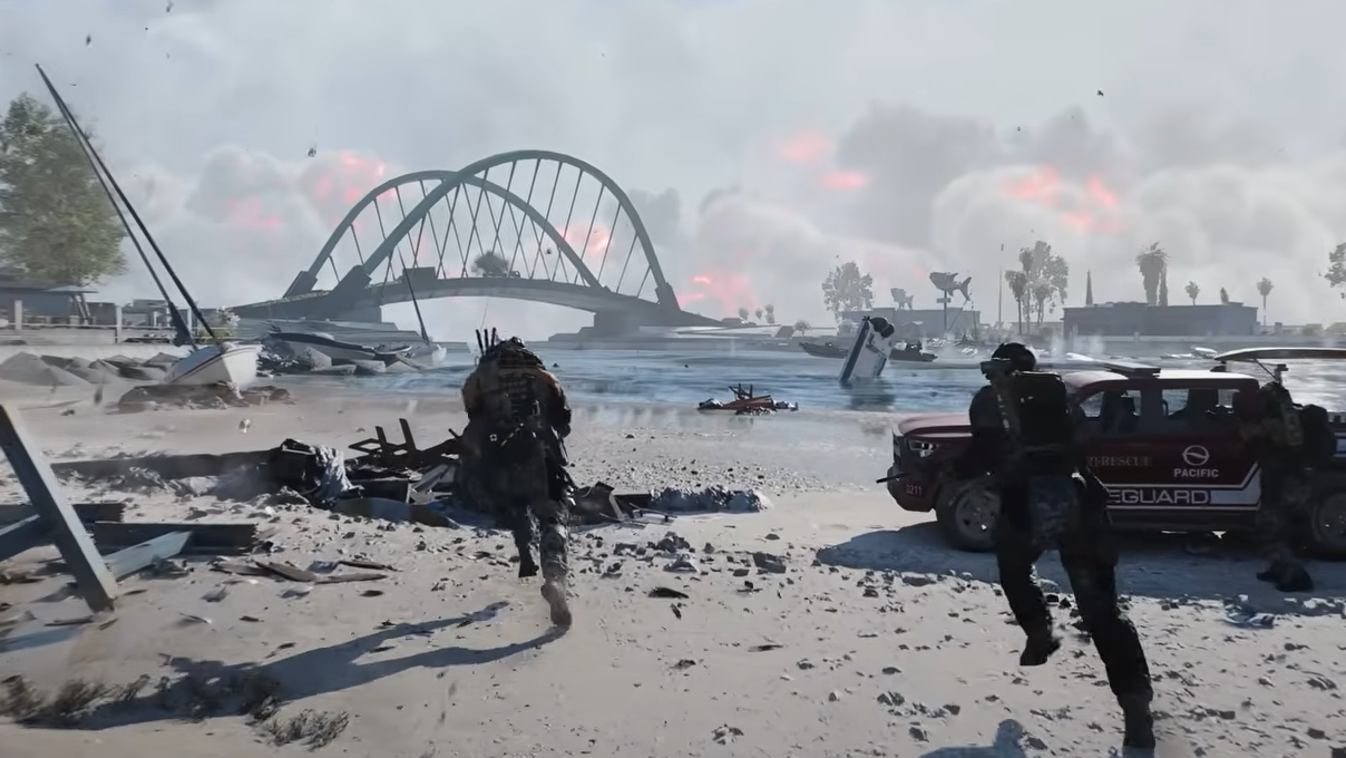 Every REDSEC mode leans on Fort Lyndon, a huge, mixed-use playspace that spans dense city blocks, military compounds, beaches, and suburbs. It’s the largest Battlefield map to date, and it’s designed for the series’ trademark destruction: you can breach walls, collapse structures, and turn rubble into cover. Vehicles matter here too; helicopters, boats, and even golf carts are scattered across the map to change the tempo of an engagement or a rotation.