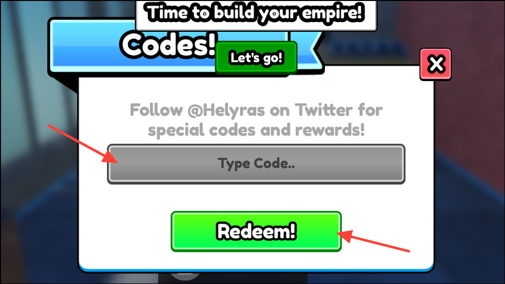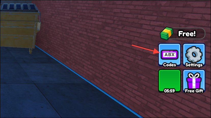 Step 2: Look for a Codes, Twitter, Settings, Gift, or Shop button in the UI (commonly on the side or within the settings/shop menu).