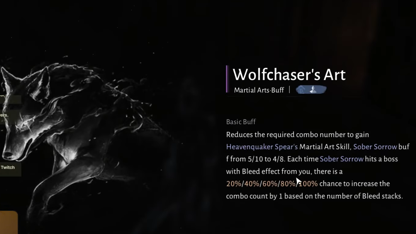 This Inner Way reduces the required combo count for Heavenquaker Spear's Sober Sorrow buff from 5/10 to 4/8. Each time Sorrow Without Wine hits a boss with your bleed effect, there is a 20%/40%/60%/80%/100% chance to increase the combo count by 1 based on the number of bleed stacks. Breakthroughs improve Affinity Rate and Affinity DMG Bonus. This talent accelerates buff uptime and makes it easier to maintain Riverflow and Flowing River during extended fights.