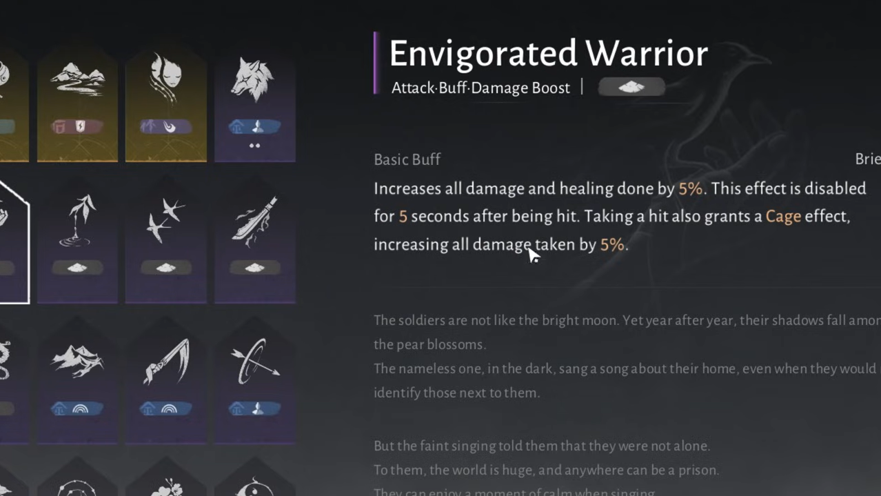 Envigorated Warrior increases all damage and healing done by 5%. This effect is disabled for 5 seconds after being hit, and taking a hit also grants a Cage effect that increases all damage taken by 5%. This talent is strong in PvE, where you can avoid damage, but in PvP, the increased damage taken becomes a liability. Consider replacing it with Adaptive Steel in PvP scenarios.