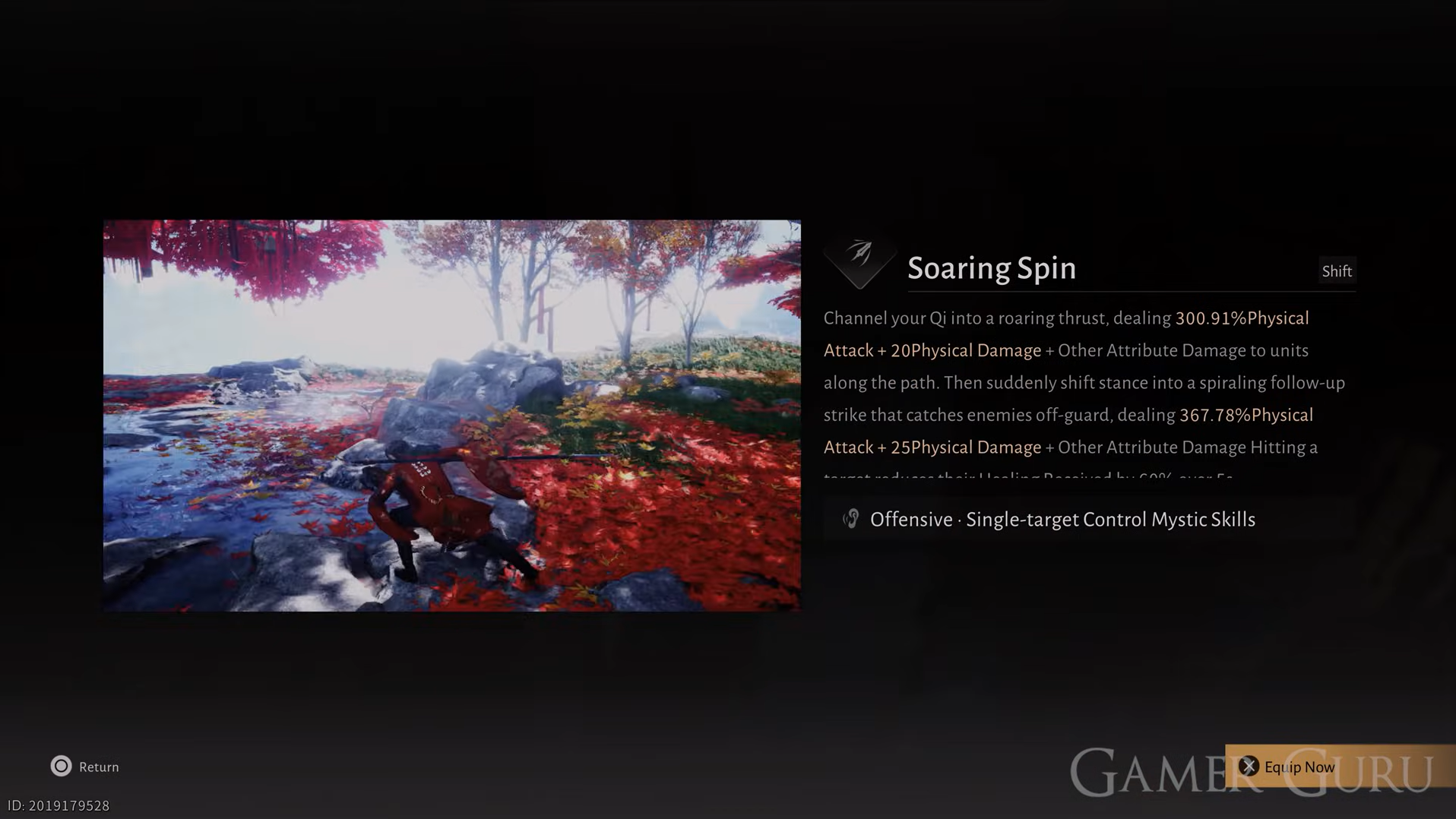 Soaring Spin: Channel your Qi into a roaring thrust, dealing damage to units along the path, then suddenly shift stance into a spiraling follow-up strike. Hitting a target reduces their Healing Received by 60% over 5 seconds. Use Soaring Spin when your endurance is low to close the distance and reposition yourself. This is the highest damage Mystic Art in the rotation.