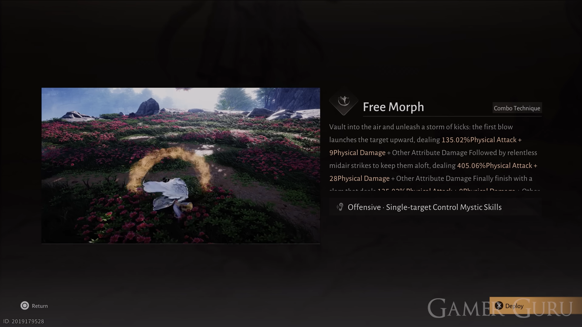Free Morph: Use Free Morph after Strategic Sword Q to kick the opponent up. Immediately parry-cancel, switch to Heavenquaker Spear, and charge attack. This is a true combo; the enemy cannot escape.