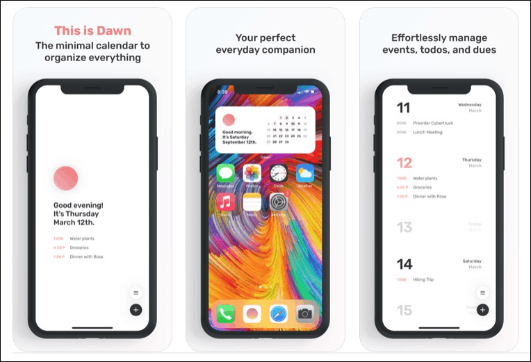 And with its iOS 14 widget support, you can have a calendar widget to manage your entire day right on the Home screen. The widgets for Dawn stay true to the agenda of the app and provide the cleanest, minimal look. Managing your entire day cannot be more efficient or elegant than with the Dawn app widget.