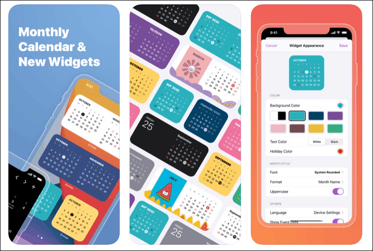 Ermine is truly one of the best calendar widget apps out there. Although it only supports two widget sizes – small and medium – it is still amazing. The widget does not only display a monthly calendar like many other apps, but it displays your monthly calendar. You can have information about upcoming events, meetings, birthdays, and holidays, all on your Home screen.