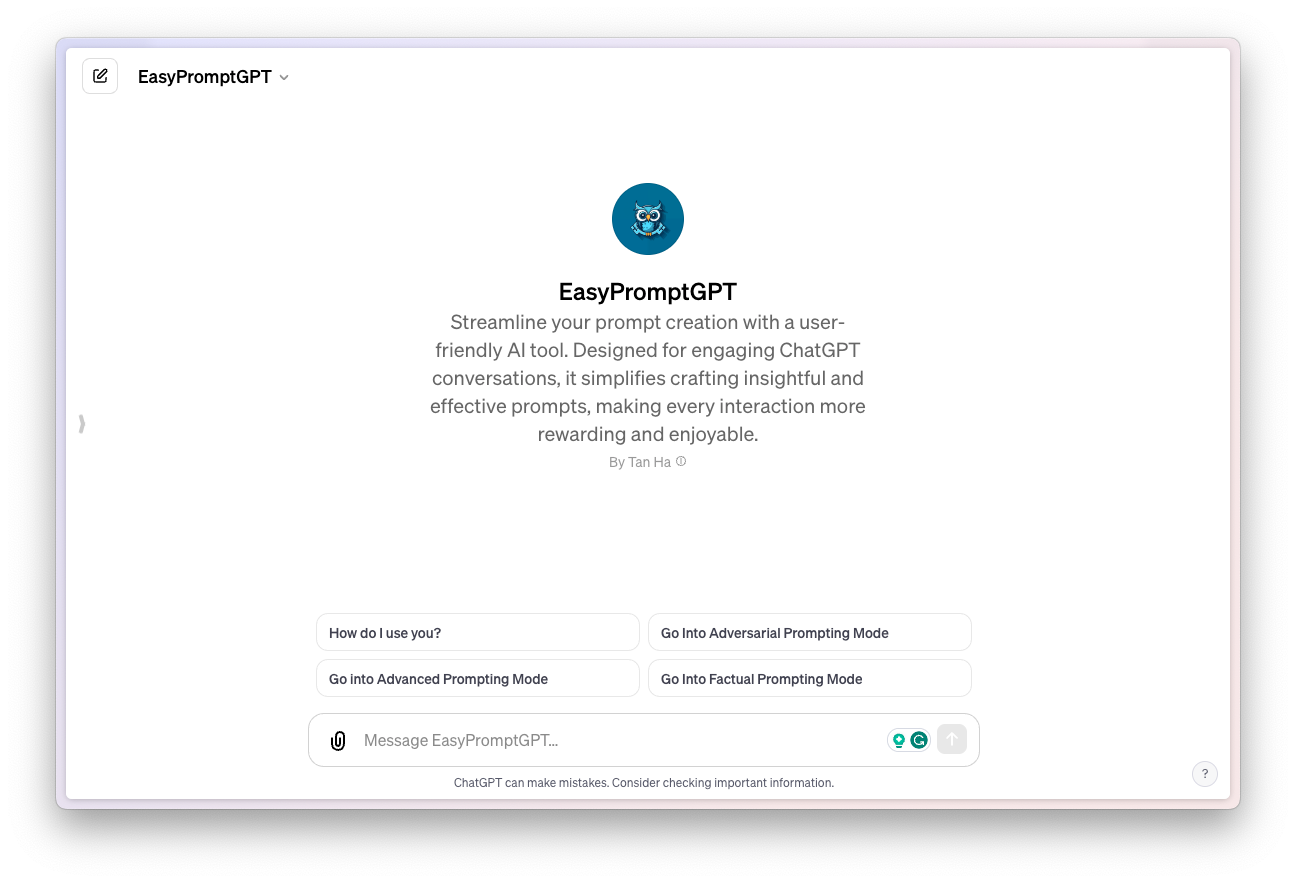 That's where this GPT comes in. It can turn your basic and simple queries into effective prompts that are tailored for ChatGPT-4.