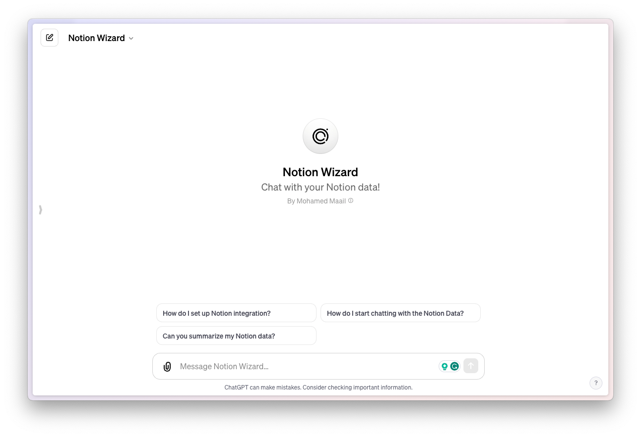 It'll even guide you on the process of creating a Notion Integration so you can connect it to the GPT and any other external applications easily.