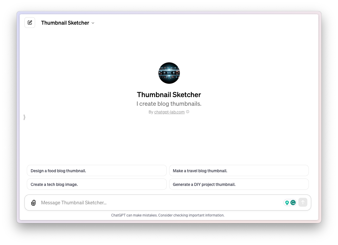 The great thing about GPTs is that they are special agents who can handle specific tasks with great ease, which makes it extremely easy to have a GPT that'll be an expert at handling that specific task. Like this Thumbnail Sketcher. While there are many image generators available out there, you'll need to prompt them first to get them to generate what you want. However, Thumbnail Sketcher is already programmed to do that.