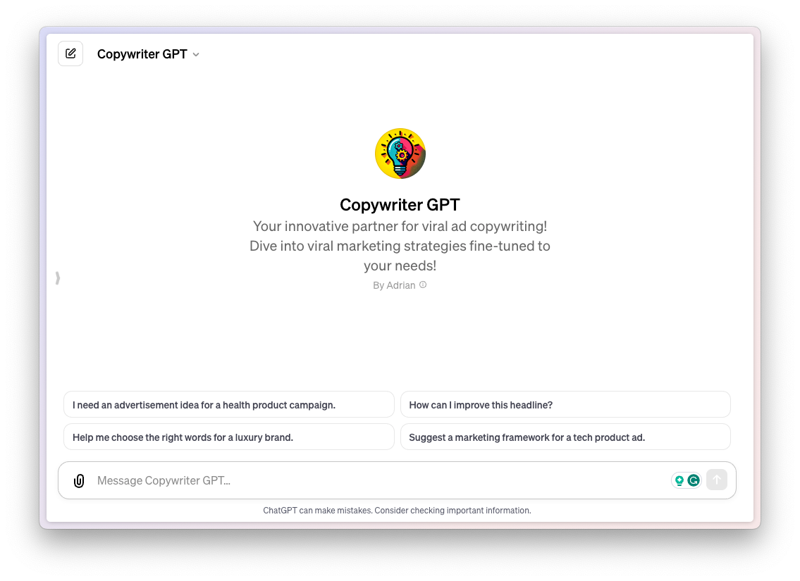 If you're a copywriter who's looking for an assistant to help you come up with perfect strategies for a campaign or critique your existing campaign, this is the GPT for you.