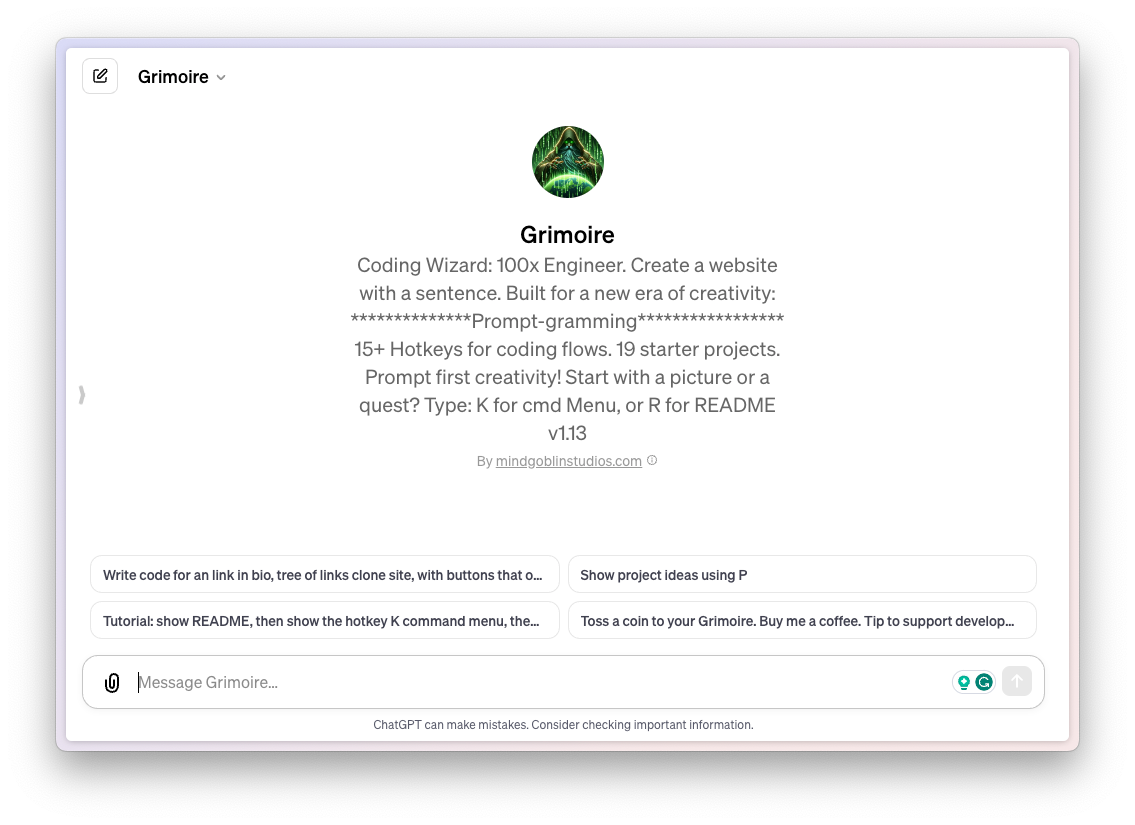 One of the most popular external author GPTs, Grimoire is the only coding assistant you want in your life. It can help you with a gamut of tasks in a matter of seconds. From coding to creating a website, interactive projects, games, AI development, mobile development environment, and much more, Grimoire lives up to its name.