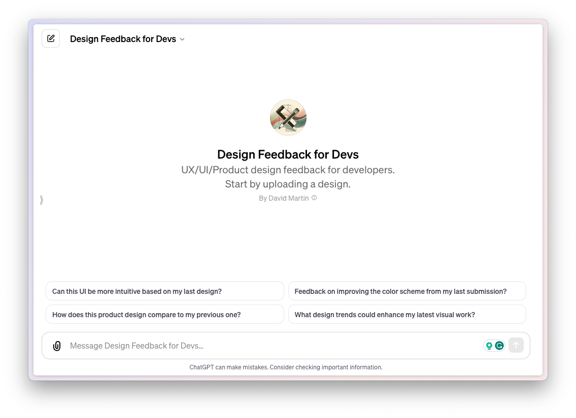You can upload your design and get feedback from the GPT about what needs to be improved, or how you can enhance it. But you need to upload your design to get started; the sole purpose of the GPT is to provide feedback and help you improve upon your existing design. If you're looking for a GPT that can guide you from the beginning, this ain't it.