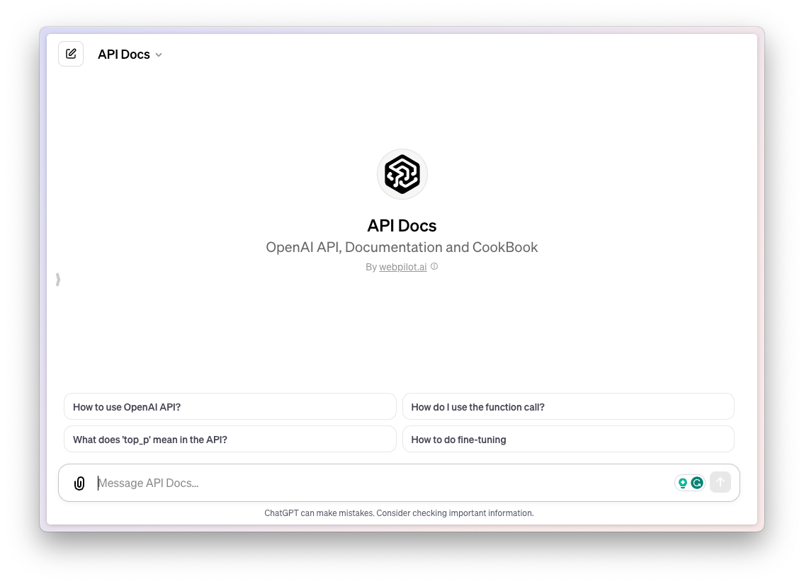 This GPT has all the knowledge about OpenAI API, documentation, and cookbooks. If you want to learn how to use OpenAI API, it can help you learn that with ease.