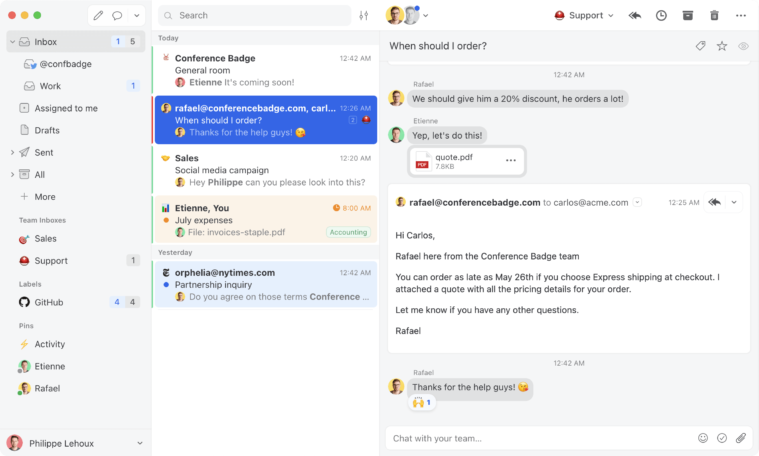 Missive is another exceptional e-mail application, especially for work. The platform optimizes productivity with collaborative e-mailing features and threadable group chats.