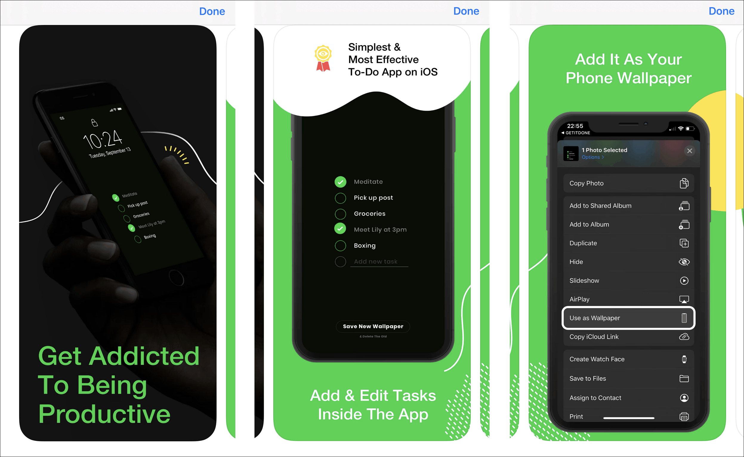 The app creates wallpapers of your to-do lists, so every time you see your phone and behold the list, you’ll be getting an itch to complete your tasks. You can buy the app for just $1.99 and get started on the journey to be your most productive self ever.
