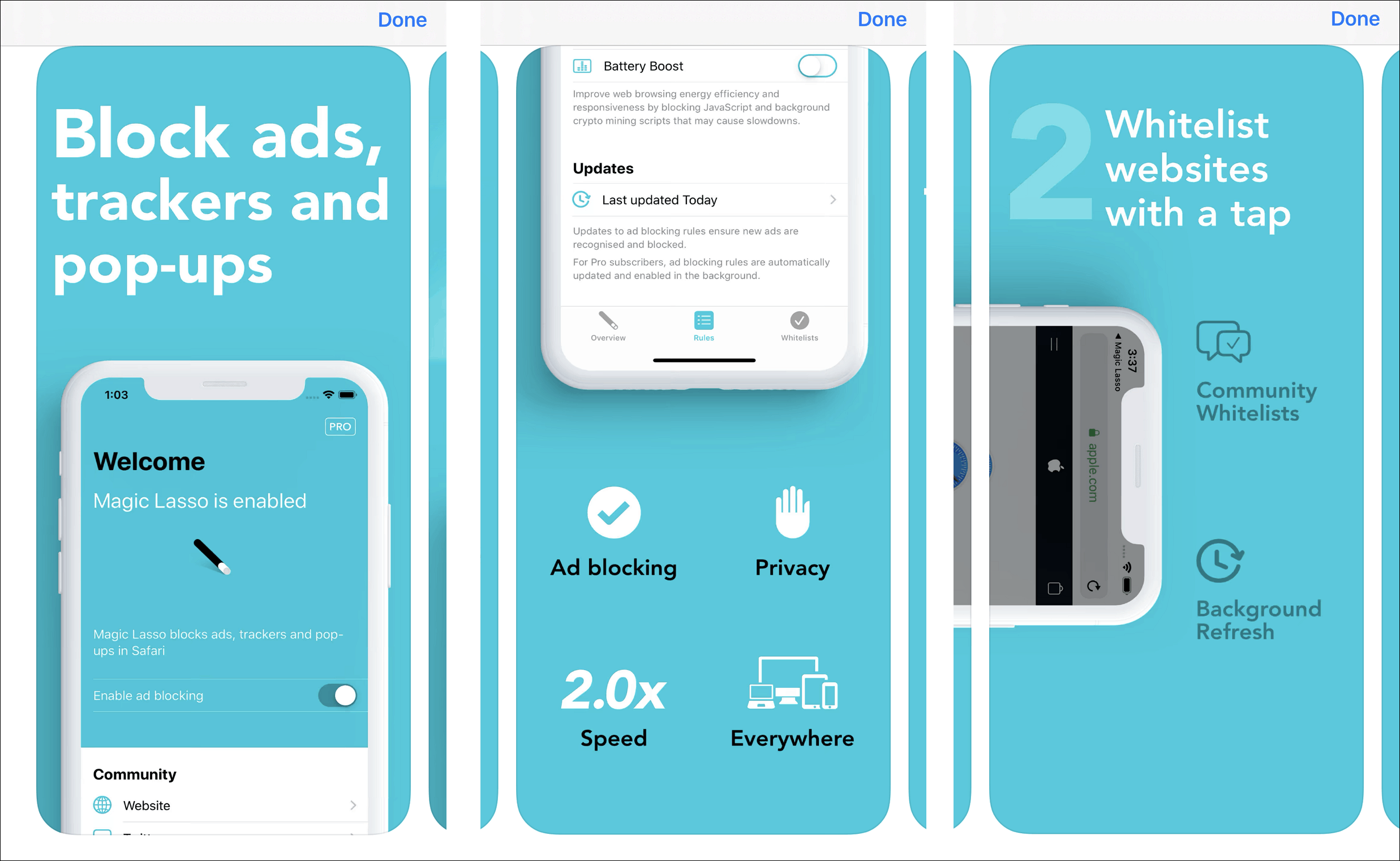 The Magic Lasso Ad Block is a free Ad Blocker for Safari which is the most efficient Ad Blocker you will ever see. It not only blocks the ads, trackers, and pop-ups in Safari but also makes your browsing 2x faster. What more could you ask for?