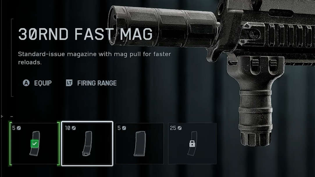 | Magazine | 30RND Fast Mag (10) | Quicker reloads keep you in the push on objective fights. |