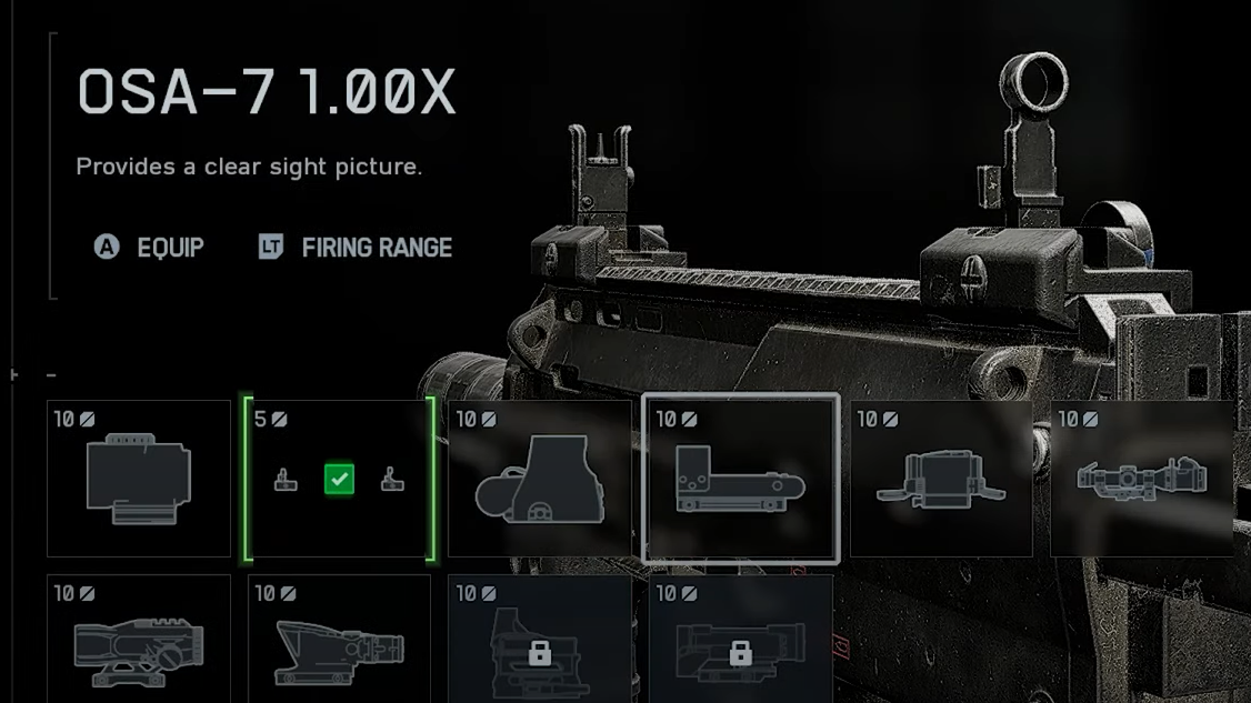 | Optic | OSA‑7 1.00x (10) | Clean, low‑magnification framing for heads‑up fights. |