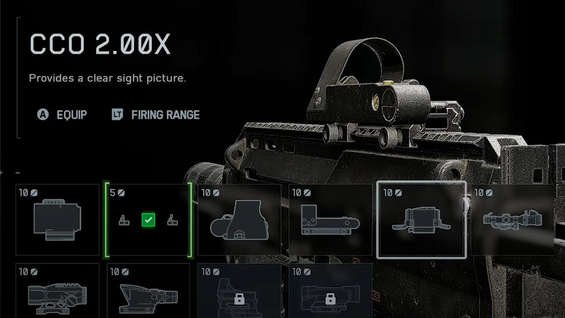 | Optic | Mini Flex 1.00x (10) | Clean sight picture for chaotic close fights (iron sights are serviceable). |