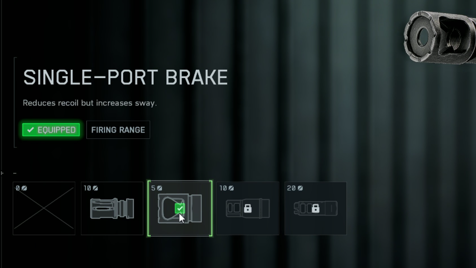 | Muzzle | Single‑Port Brake (5) | Small recoil cut without heavy point spend. |