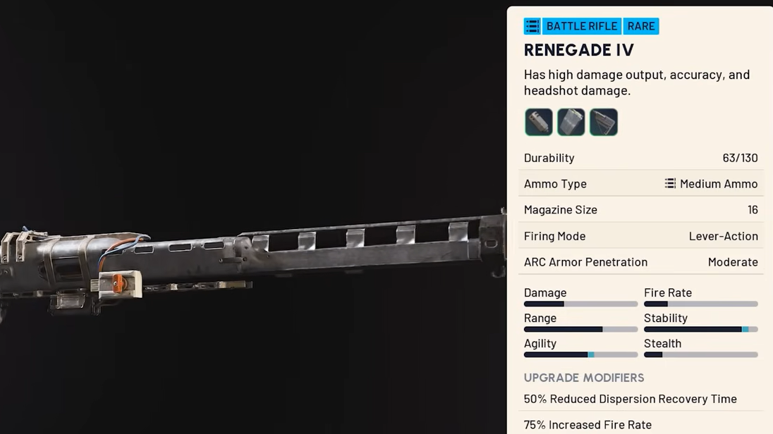 The Renegade sits near the top of the semi-auto rifle pool in ARC Raiders thanks to a high fire rate and heavy per-shot damage. The catch is that its accuracy lives and dies by how fast its reticle resets between shots, which puts most of the loadout decisions on the stock and muzzle slots. The right combination turns it into a reliable mid-to-long-range weapon; the wrong one leaves shots drifting off target even when aim is clean.