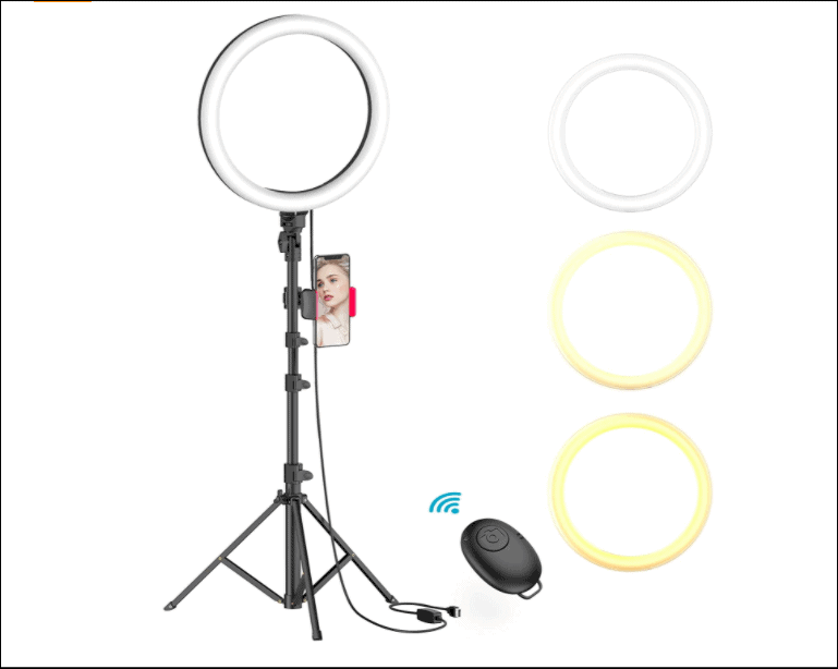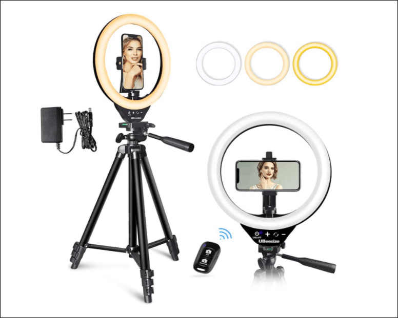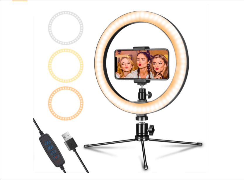 Another brilliant light ring from UBeesize. Packed together with an adjustable tripod, a rotatable phone holder, and a set of three lighting modes, this vanity light ring works great not just for your Zoom meetings, but also for making videos and taking pictures. This USB-powered light ring also provides 11 brightness controls for each of its lighting modes.