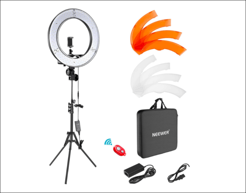 This ring light kit is one of the best options in the market. Although a little on the expensive side, Neewer Ring Light Kit is a wholesome vanity ring light package. You receive two filters; a white and an orange filter set, a camera/phone holder among other essentials in the kit. You not only can use this kit for your Zoom meetings but also for those warm selfies you’re too afraid to snap outside.