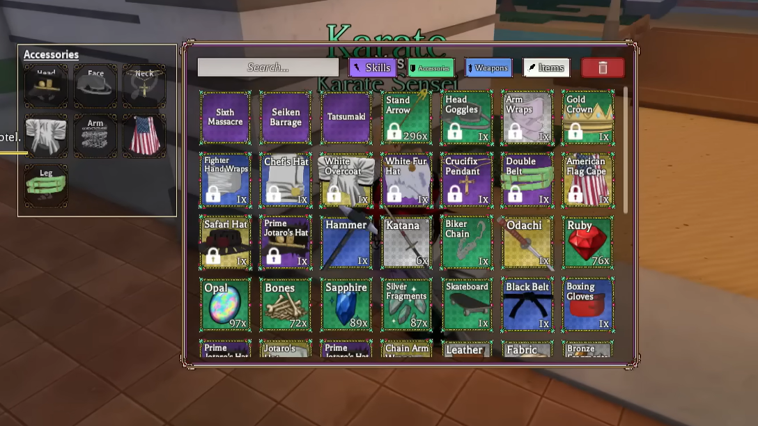 | Stone Mask | Unlocks the Vampire Sub-Ability when used | Common Chests, Rare Chests, Legendary Chests, and the Robux Shop |