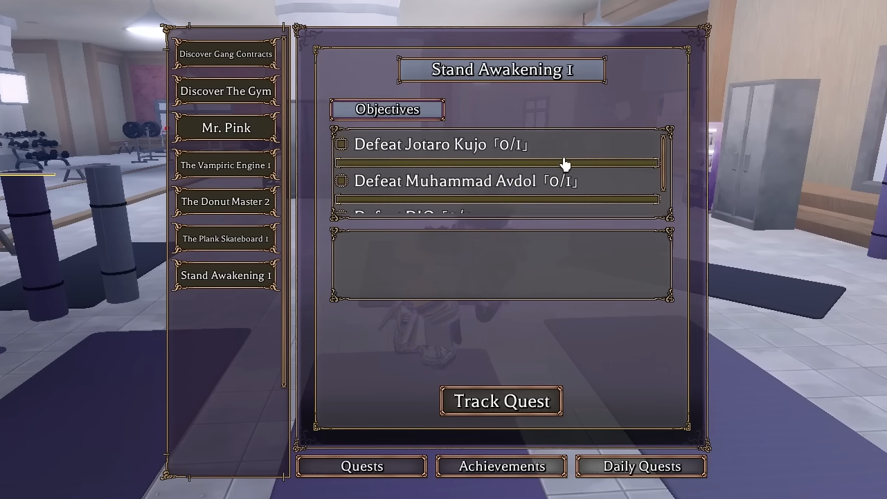 | Stand Awakening III | Defeat The Self 13 times in the meditation realm | Gym at Bus Station 2 |