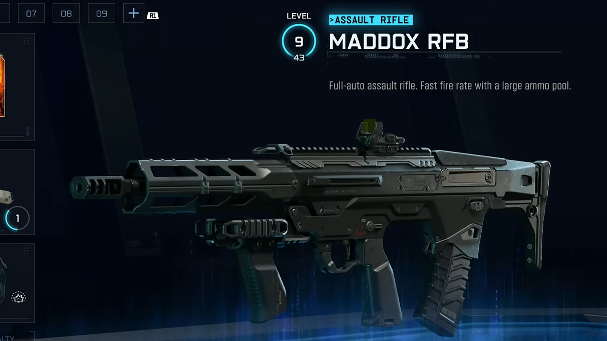 The Maddox RFB returns from Black Ops 4 as a bullpup assault rifle with a very high rate of fire and a large magazine, sitting somewhere between a traditional AR and an aggressive mid-range weapon.