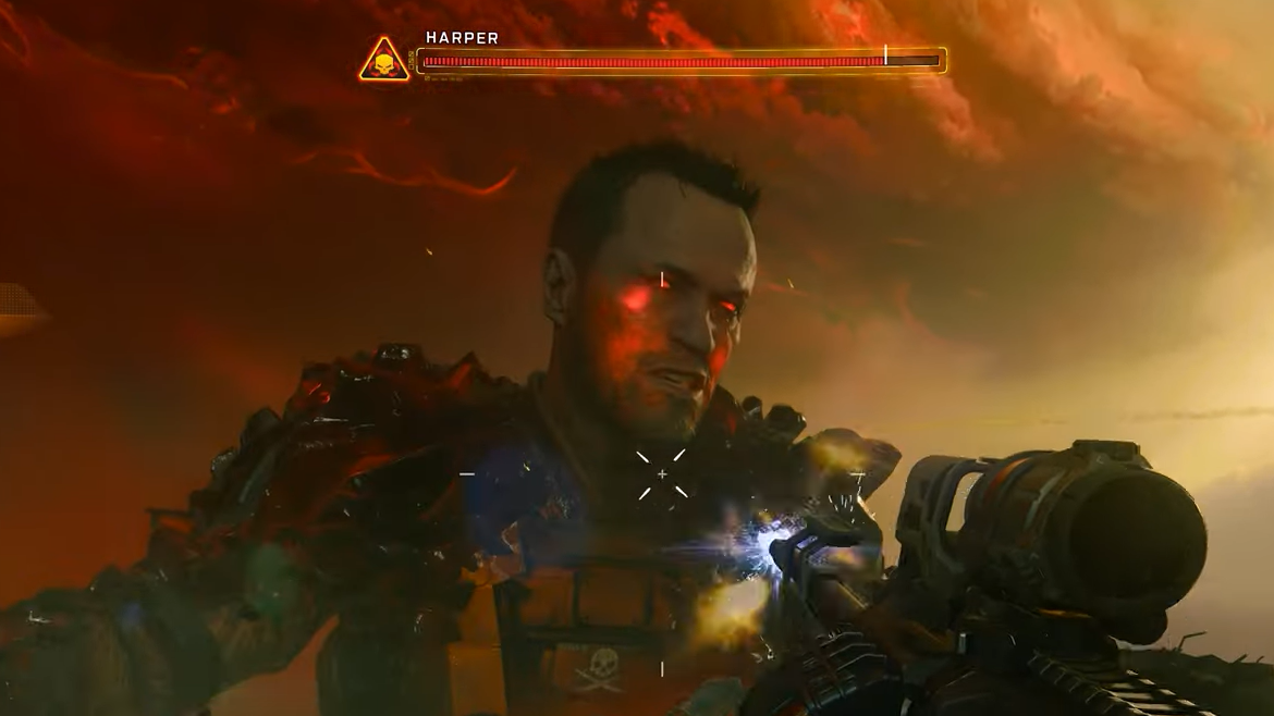 The meme points at a specific moment in the co-op campaign. Harper, a familiar face from earlier Black Ops entries, learns a major truth about past events and mentally snaps. Under the influence of a psychotropic weapon, he drags the squad into a shared hallucination that plays out as a boss fight.