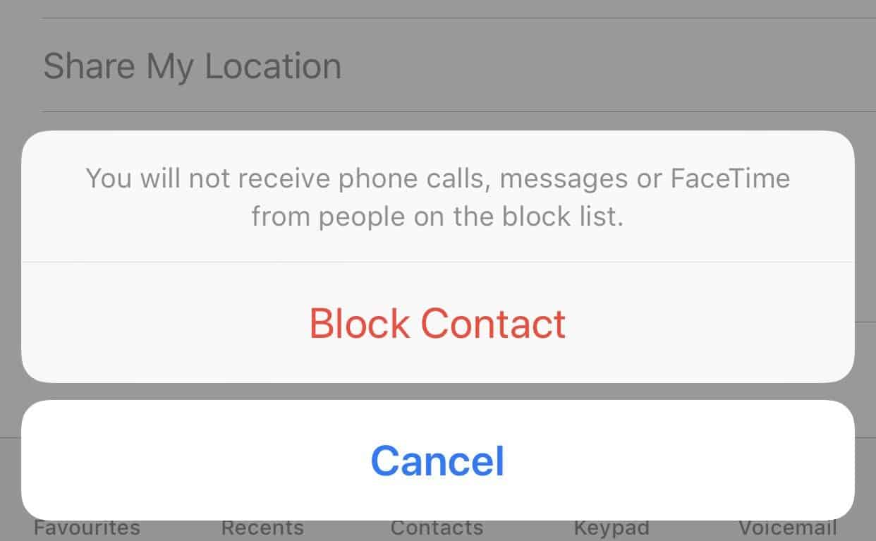 - Tap on Block Contact to confirm.