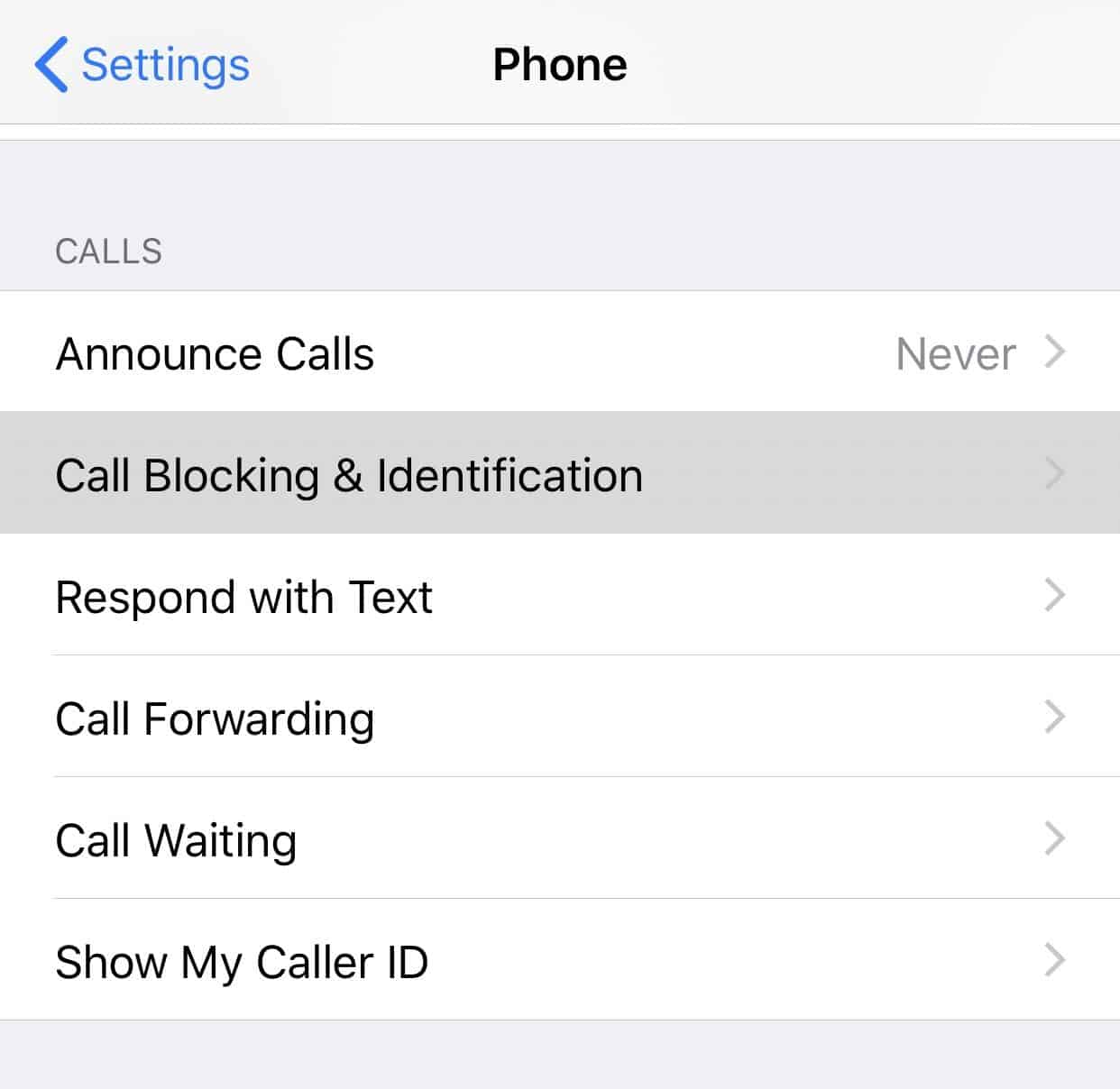 - Go to Settings » Phone » Call Blocking & Identification.