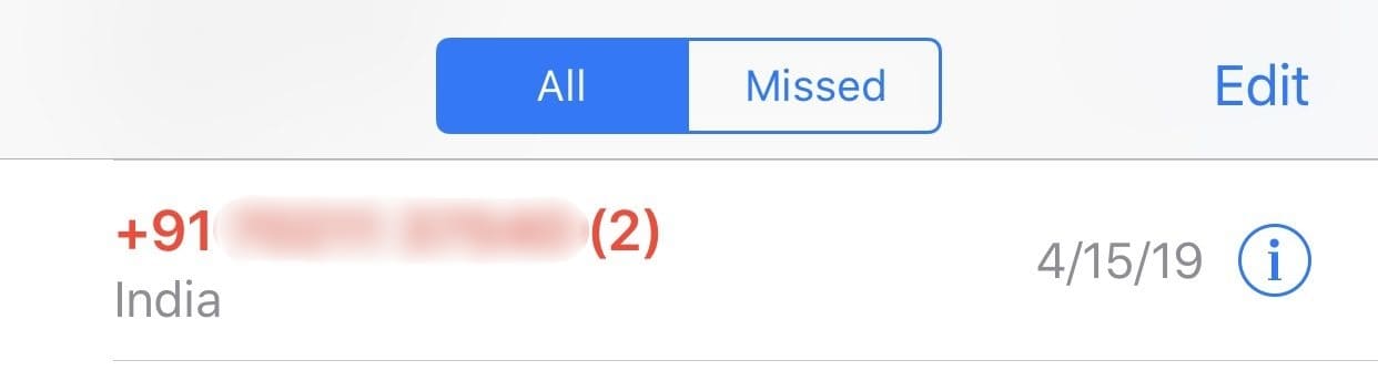- Find the number that you wish to block and tap the circular ‘i’ icon located next to the number.