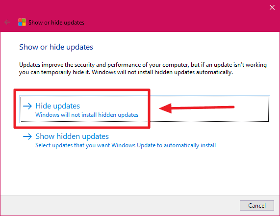 Download the Windows 10 “Show or hide updates” troubleshooter tool by Microsoft from the link below.