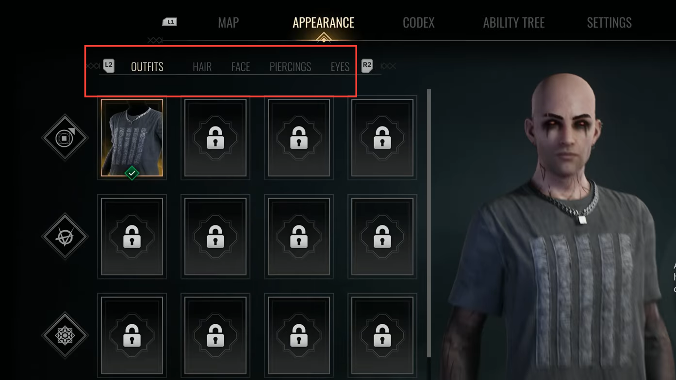 Outfits work differently from other cosmetics. They’re earned as you learn vampiric powers on your clan skill lines after the intro. Unlocking a Toreador ability, for example, grants a Toreador‑themed outfit. You can eventually learn powers from other clans and pick up their outfits, too, though it typically costs additional ability points to branch out.
