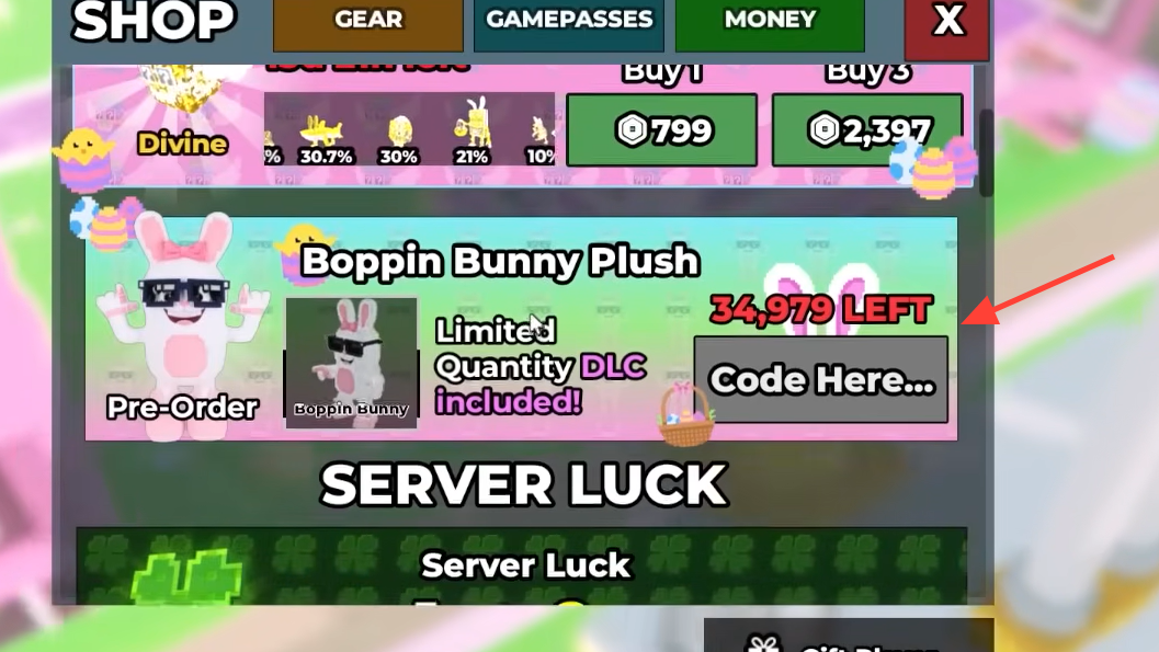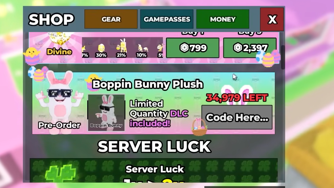 Step 3: Head to the "Redeem DLC" section on the SAB website and enter your code. The in-game Boppin Bunny brainrot will be added to your inventory. Unlike the earlier Festive 67 plush DLC, Boppin Bunny can arrive with mutations — meaning your redeemed copy might roll Gold, Diamond, or other mutation variants.