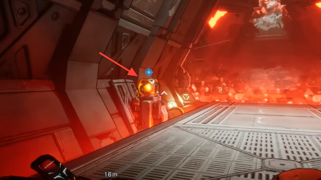 - Grab a canister (pick up or pull with your grapple), sprint it to the bunker door, and throw it at the plating. The canister has a short fuse; don’t dawdle.
