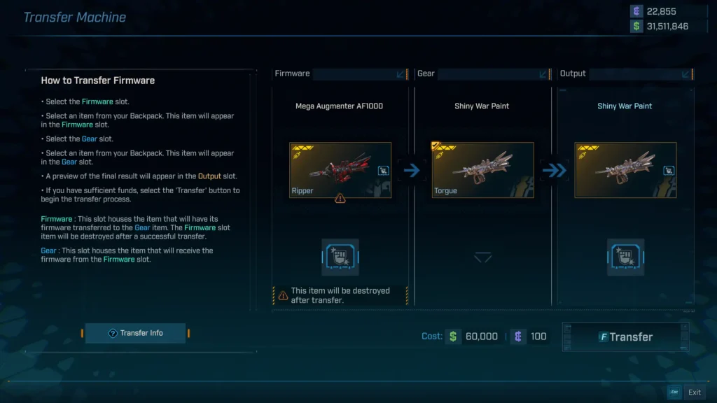 Firmware is the late‑game glue that turns a strong build into a specialized one. Use the five-slot limit to your advantage—lock in a three‑piece core that defines your playstyle, then layer in a two‑piece that smooths reloads, cooldowns, or survivability. If a drop shows the set you need, keep it. The transfer machine ensures that good firmware never goes to waste.